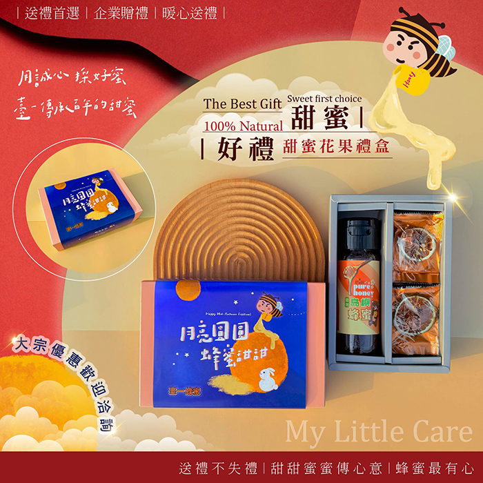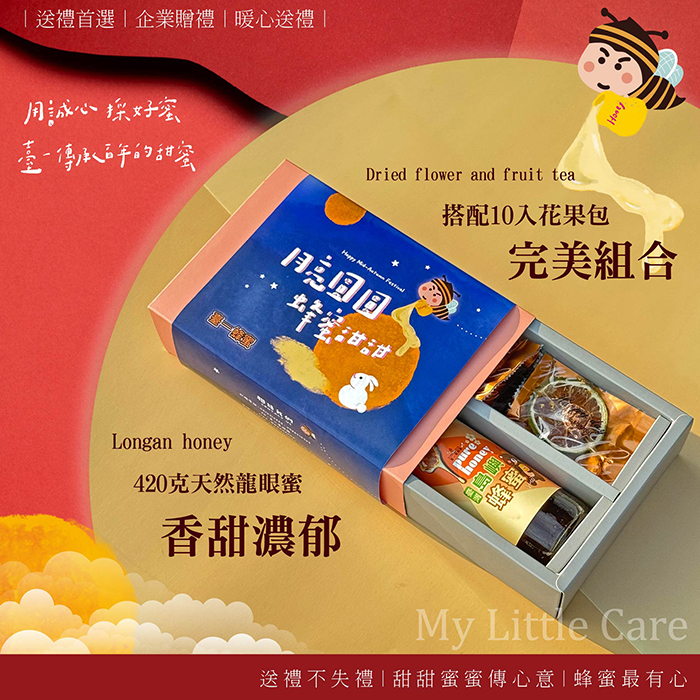 這份禮盒結合了天然龍眼蜜與精緻花果包,