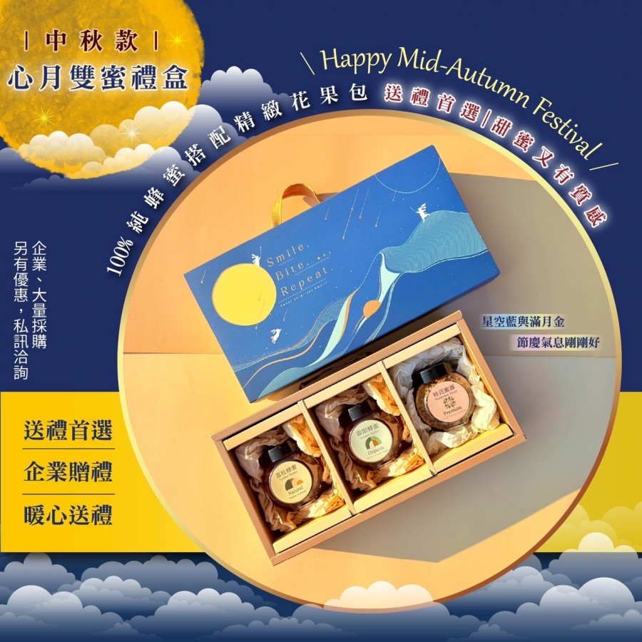 心月雙蜜禮盒(龍眼蜜+荔枝蜜+花果包)-中秋款(圓滿浪漫) |