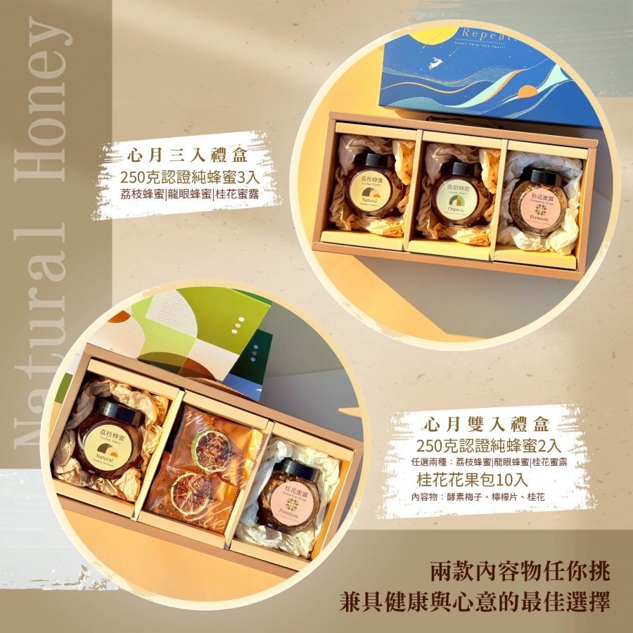 心月雙蜜禮盒(龍眼蜜+荔枝蜜+花果包)-日常款(簡約質感) |