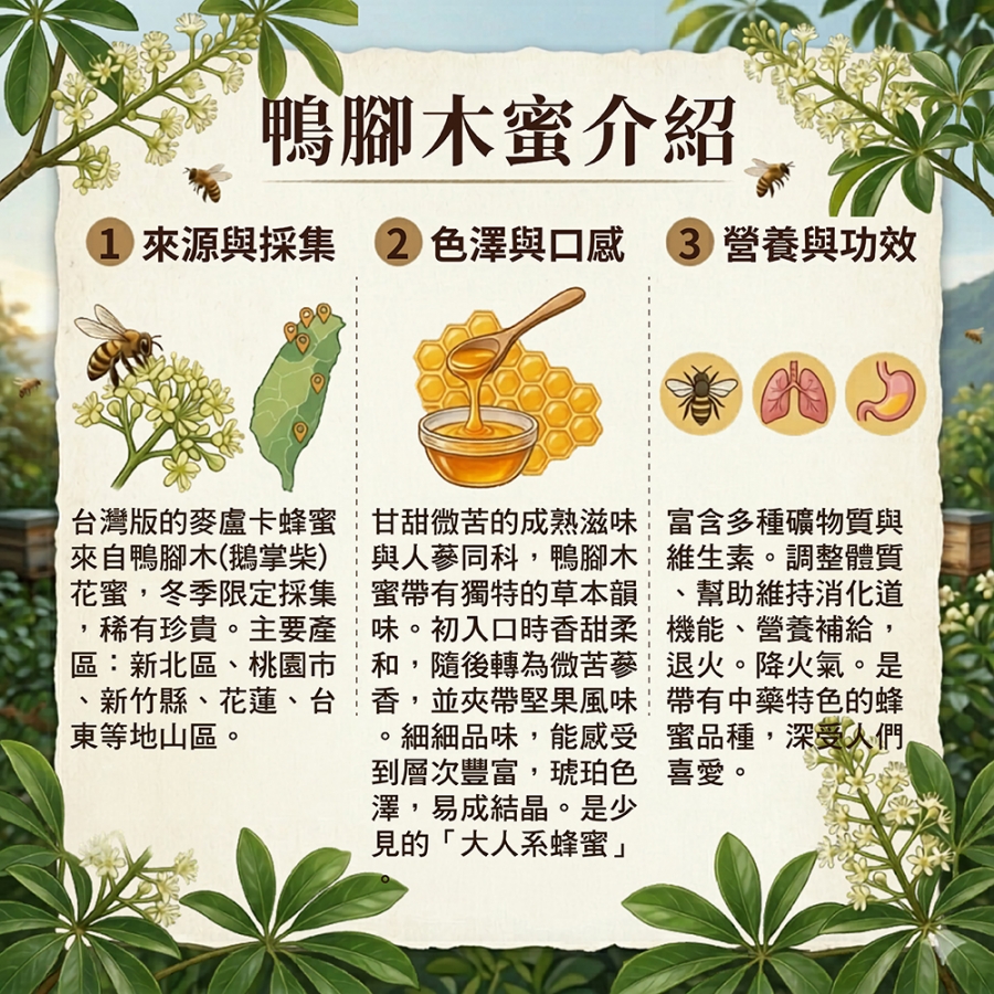 鴨腳木蜂蜜|台灣版麥盧卡蜂蜜・冬季限定珍稀蜜